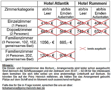 Für die Buchung oder Fragen wenden Sie sich bitte per Email an: ticketservice@prinz-heinrich-leer.de